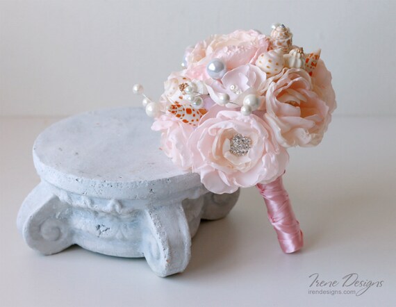 One Seashell Bridesmaid Bouquet For Beach Wedding Petal Pink Etsy