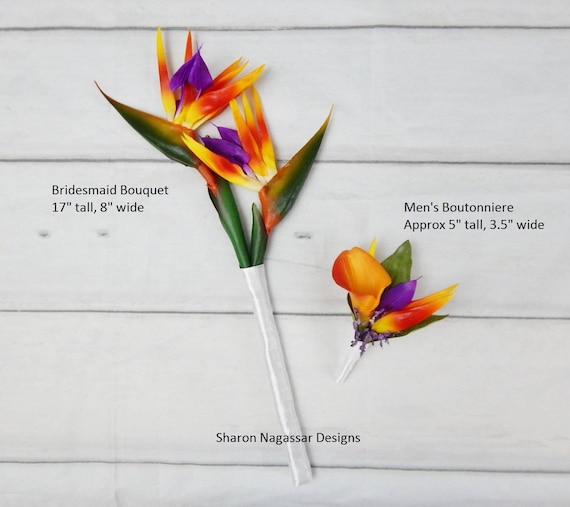 Orange Yellow Purple Bird Of Paradise Bridesmaid Bouquet Etsy