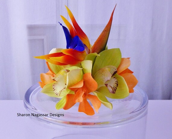 Orange Blue Green Tropical Bird Of Paradise Orchids Cake Etsy