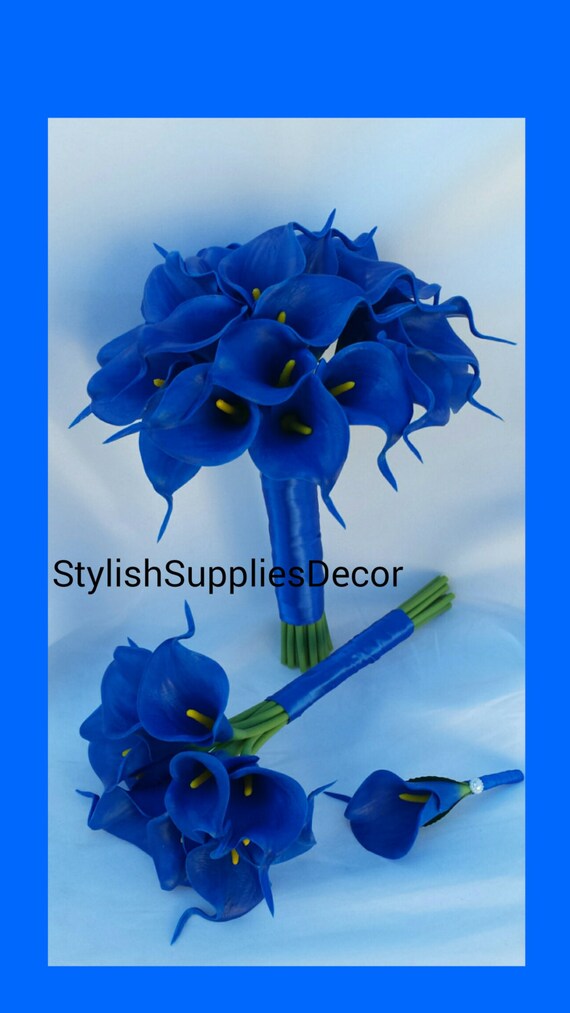Royal Blue Calla Lily Bouquets Blue Wedding Bouquets Royal Etsy