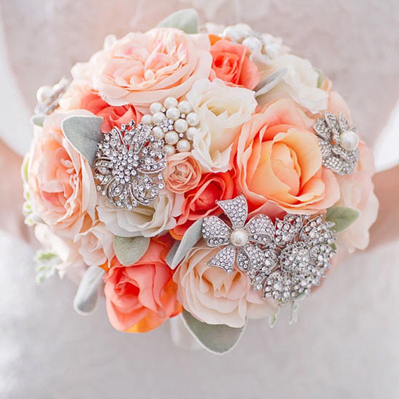 Peach Rose Wedding Bouquet Silk Flower Bouquet Made With Coral