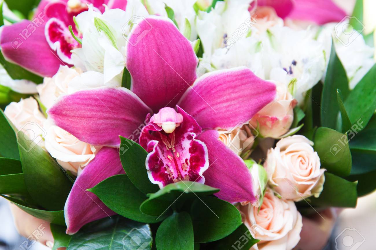 Beautiful Modern Wedding Bouquet Close Up Shot Stock Photo