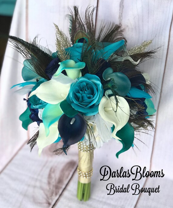 Peacock Bouquet Teal Wedding Bouquet Turquoise Bouquet Etsy