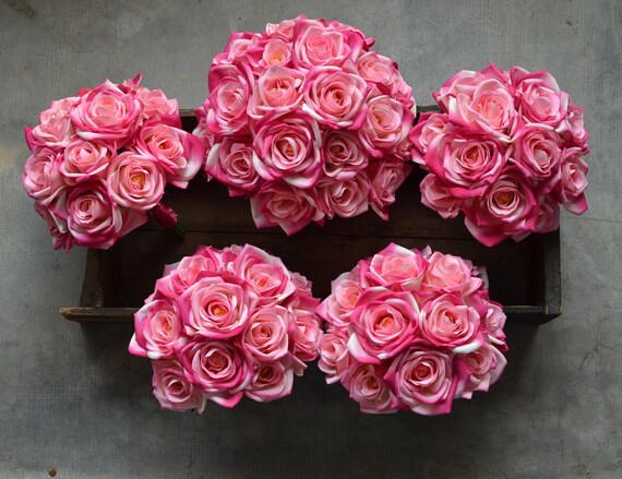 Hot Pink Roses Wedding Bouquets Real Touch Roses Bridal Etsy
