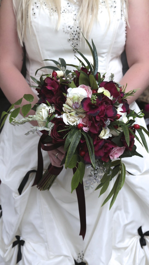Christmas Wedding Bouquet Ivory Burgundy Winter Vintage Style
