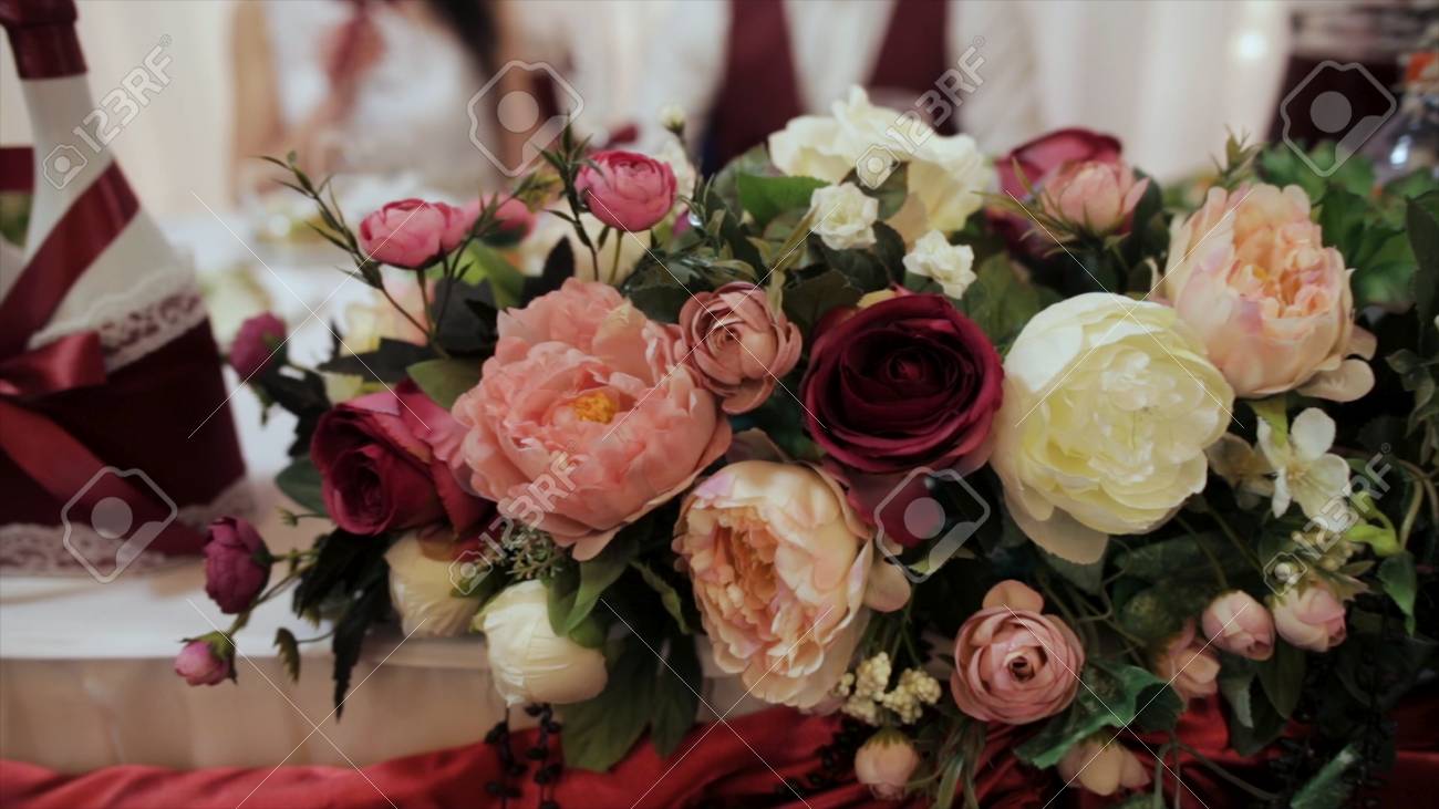 Beautiful Bouquet Of Rose Flowers On Table Wedding Bouquet