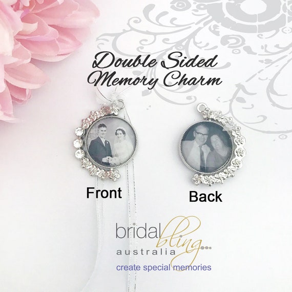 No matter what youre looking for or where you are in the world our global marketplace of sellers can help you find unique and affordable options. This is a sent as a diy charm ie blank and you can easily insert your own photo. Description photo memory charm bridal bouquet charm memorial charm have your loved ones that are no longer with us be apart of your special day with their photo beautiful framed and attached to your bouquet memory tree or around your wrist.