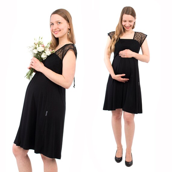 Festive Black Maternity Nursing Dress With Black Lace Top Etsy