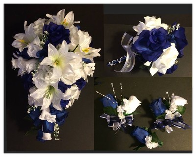Royal Blue White Rose Tiger Lily Bridal Wedding Bouquet Etsy