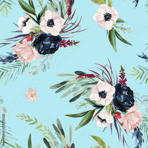 Watercolor Seamless Pattern Floral Illustration Blush Pink