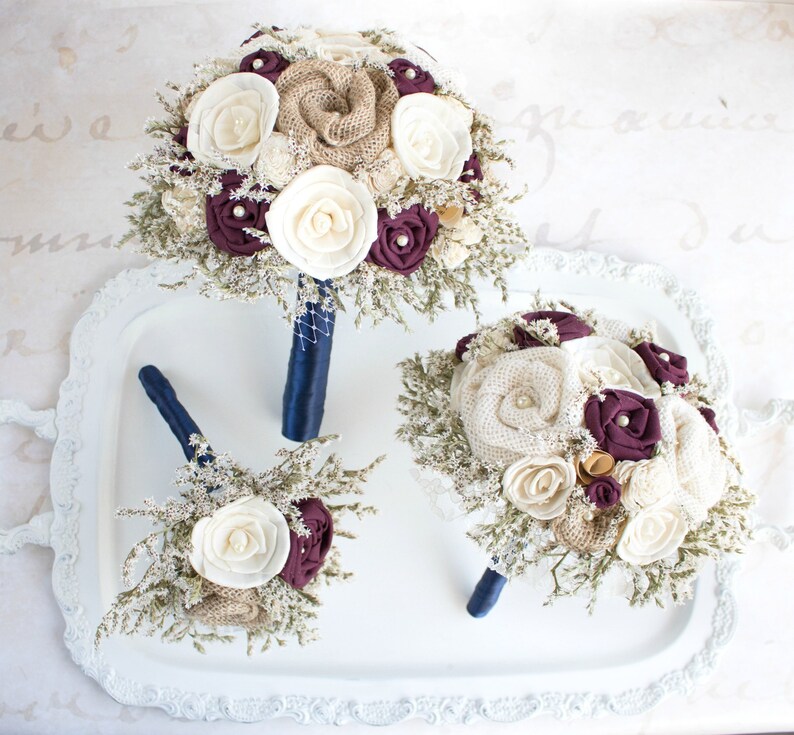 Burgundy Natural Bridal Bouquet Rustic Bouquets Burlap Wedding