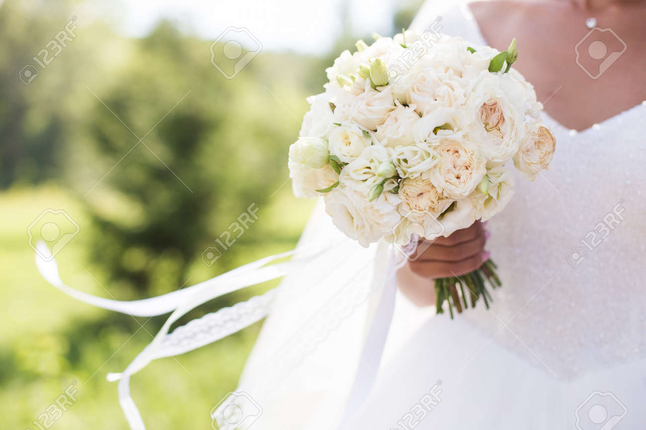 Wedding Bouquet In Bride S Hands David Austin Stock Photo