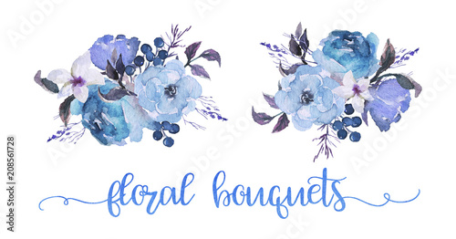 Watercolor Floral Illustration Two Flower Morning Glory Bluebird