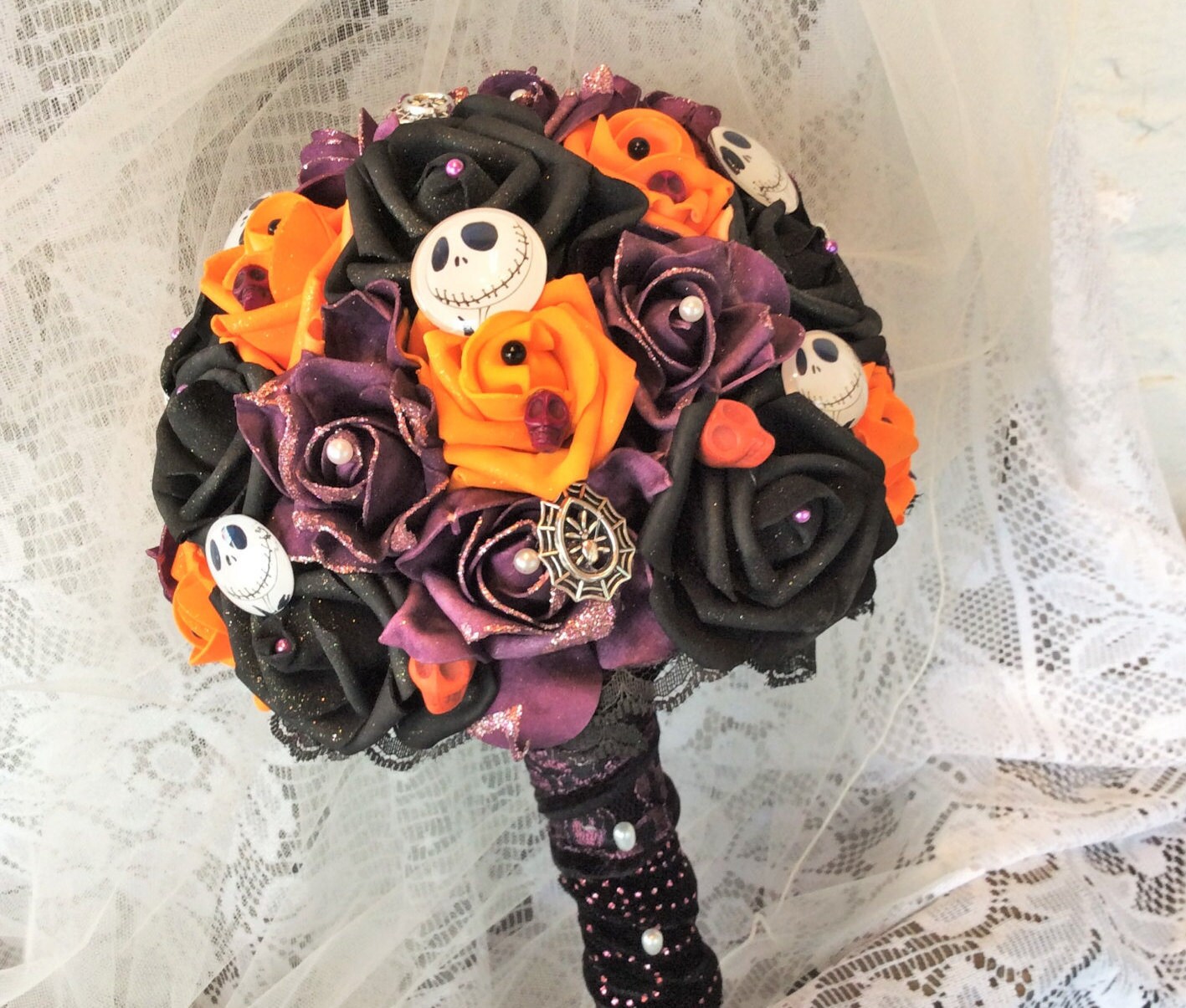 Wedding Bouquet Bridal Silk Flowers Decoration Black Orange Daisy Lily