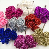 Artificial Flowers Red Gold Foam Rose Wedding Crystal Bridesmaid