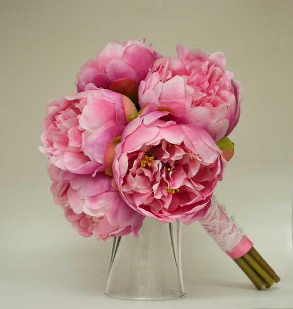 Silk Peony Bouquet Hot Pink Peonies Shabby Chic Peony Flowers Etsy