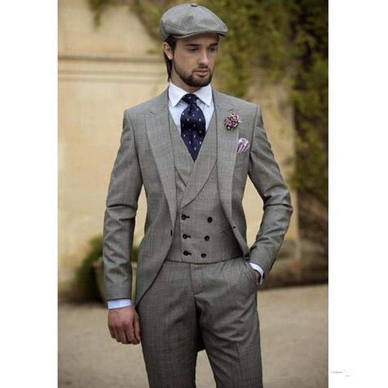 Three Piece Best Men Suits Vintage Grey Men S Wedding Tuxedos Slim