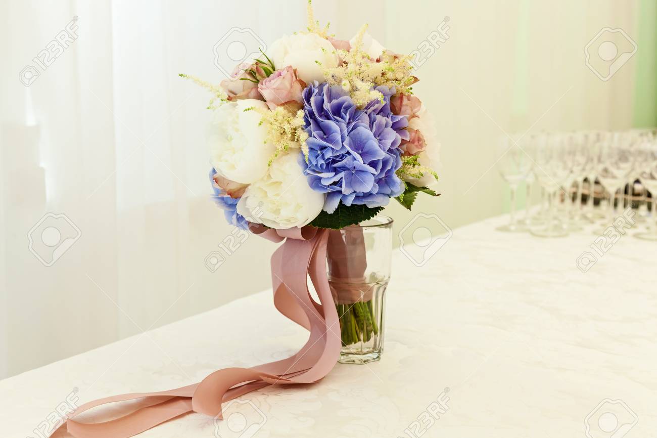 Close Up A Beautiful Tender Bridal Bouquet In Pastel Colors Of