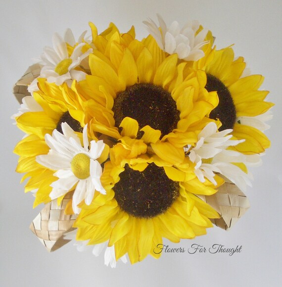 Sunflower Daisies Bouquet Fft Original Design Yellow White Silk