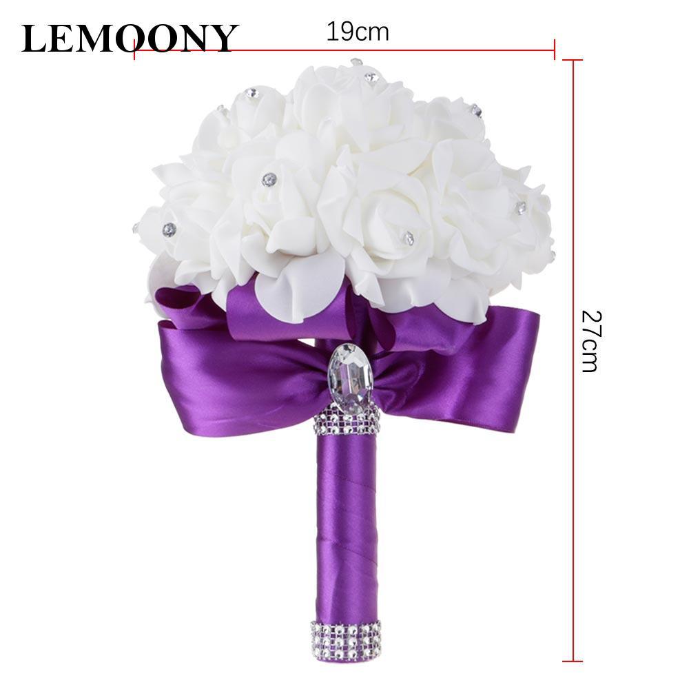 Purple Bridal Bridesmaid Brooch White Wedding Flowers Foam Bouquet