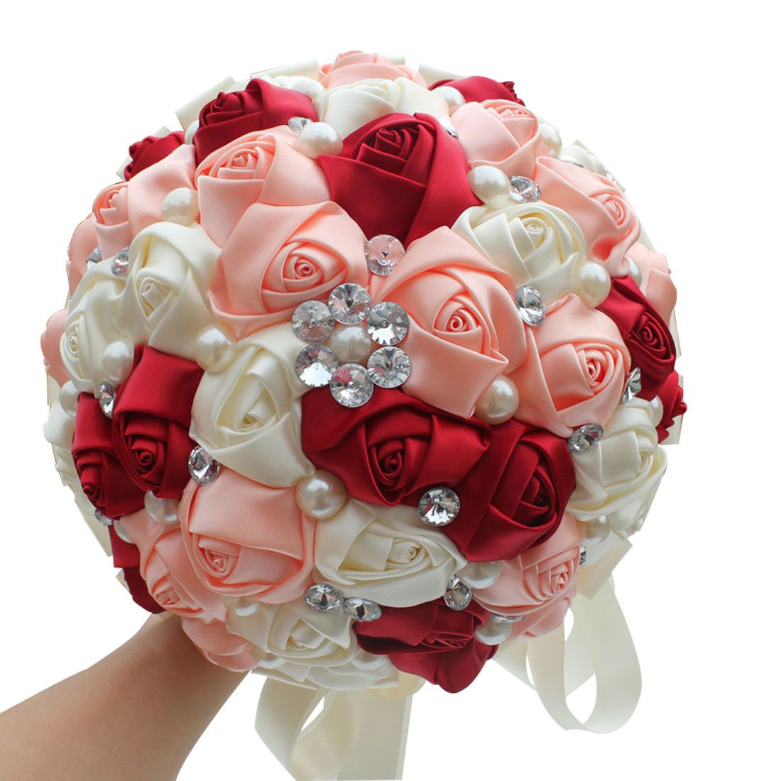 Bridesmaid Artificial Wedding Flowers Bridal Bouquets Rose Crystal