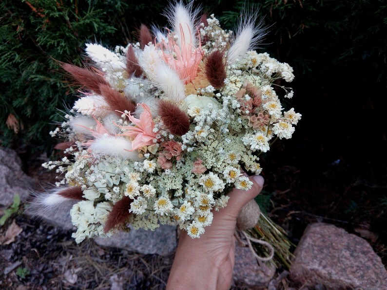 Dried Flower Bouquet In White And Brown With Coral Nigella Etsy
