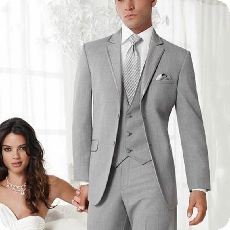 Italian Gray Men Suits For Wedding Two Button Groom Tuxedo Best