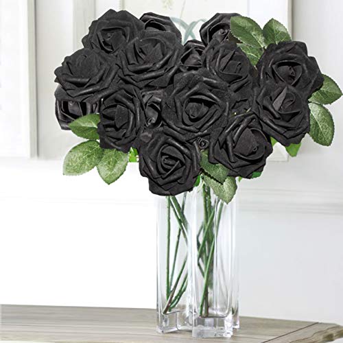Yingsheng Black Roses Artificial Flowers 25pcs Real Looking