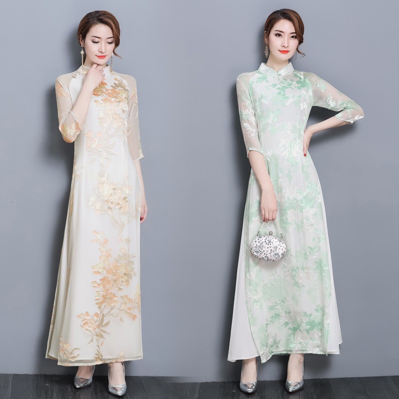 Fashion Elegant Women Cheongsam Dresses Wedding Dinner Flowy Long