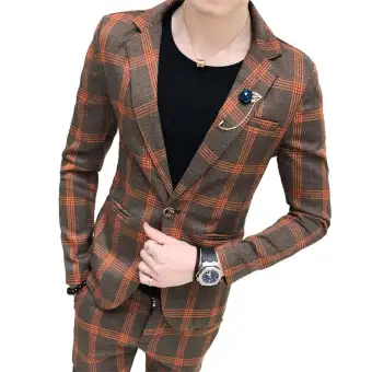 Blazer Pants 2pcs Set Mens Suits Blazers Formal Plaid Vintage