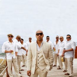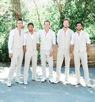 White Linen Suits White Grooms Tuxedos Beach Wedding Suits For