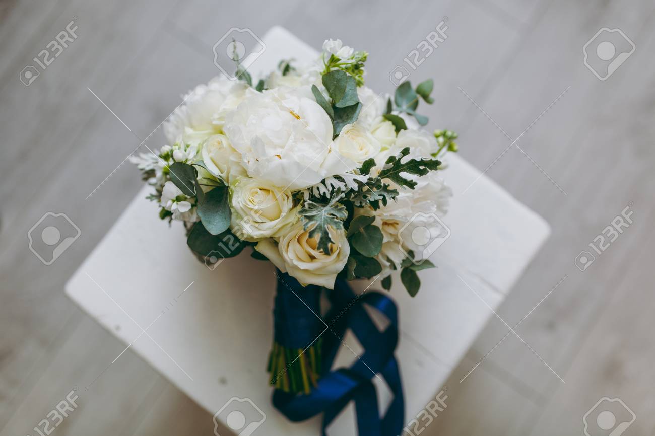 Close Up A Beautiful Tender Bridal Bouquet In Pastel Colors Of