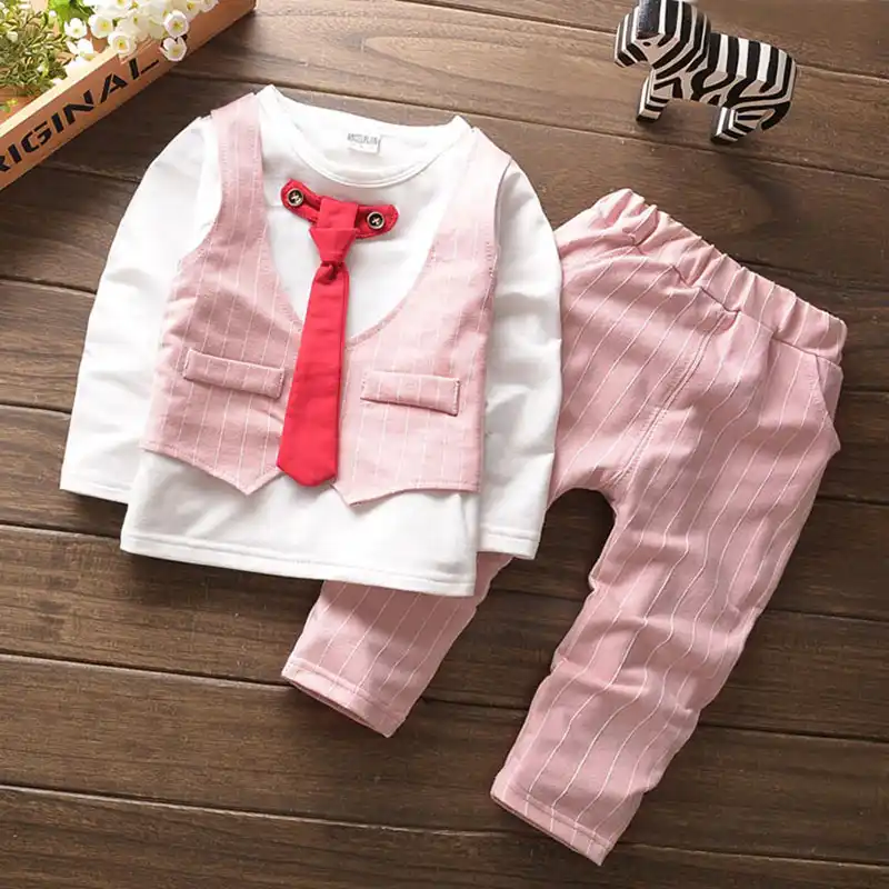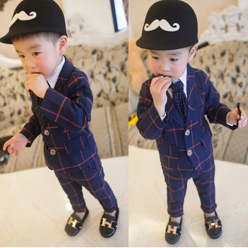 New Baby Boy Formal Plaid Long Sleeved Sets Kid Clothes Party