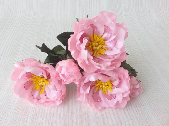 Silk Peony Bouquet Light Pink Peonies Shabby Chic Peony Etsy
