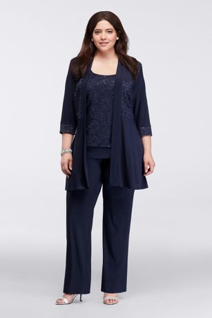 Mock Two Piece Lace And Jersey Pant Suit David S Bridal