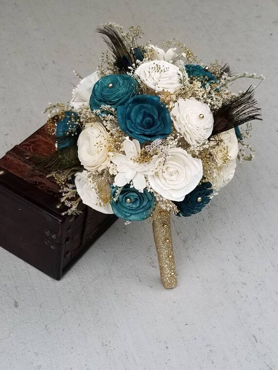 Sola Bouquet Peacock Bouquetteal Greenbouquet Bride Etsy