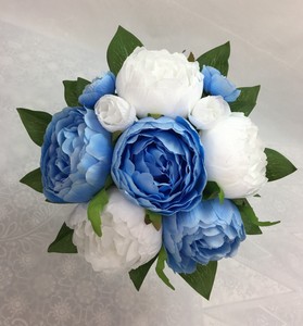 Light Blue White Peony Flowers Posy Artificial Silk Flower Wedding