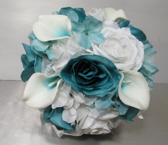 Turquoise White Rose Calla Lily Bridal Wedding Bouquet Etsy