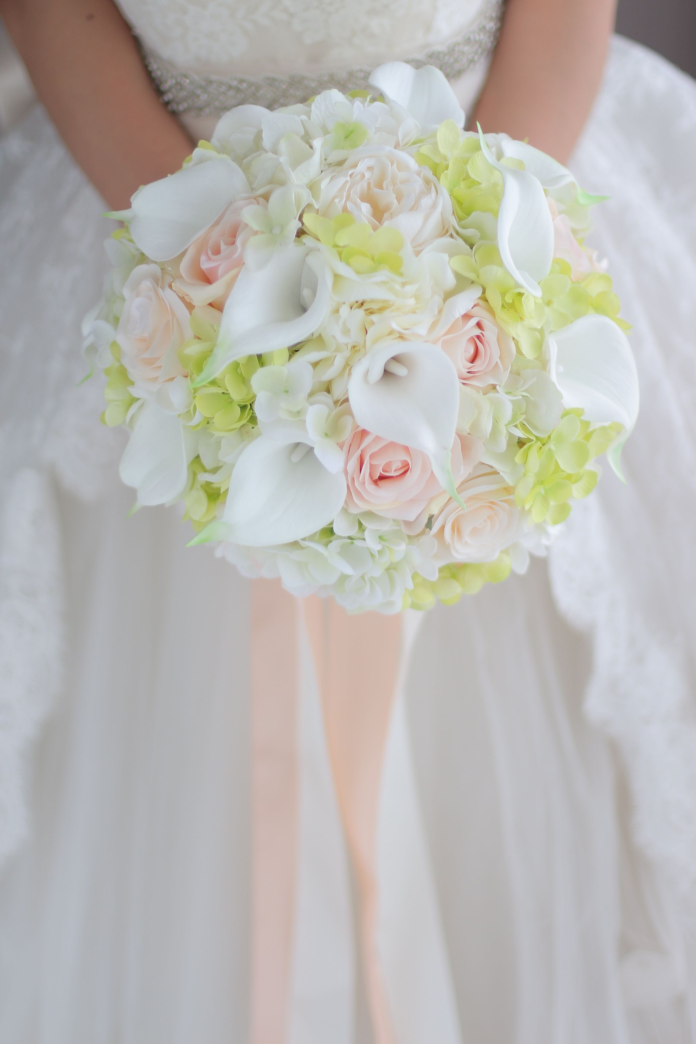 Latest Wedding Bouquet White Champagne Rose Calla Lily Green