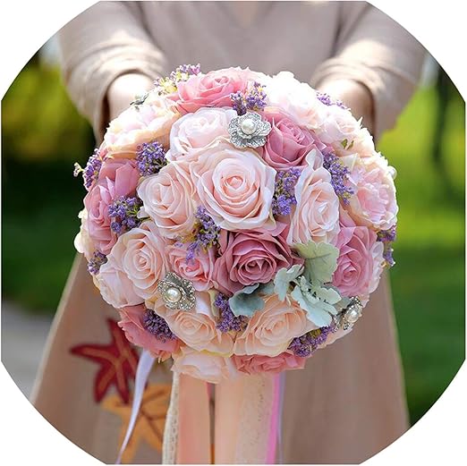 Amazon Com Qiuhuaxiang Vintage Pink Crystal Wedding Bouquets Silk