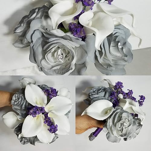 Amazon Com Grey Purple Rose Calla Lily Bridal Wedding Bouquet