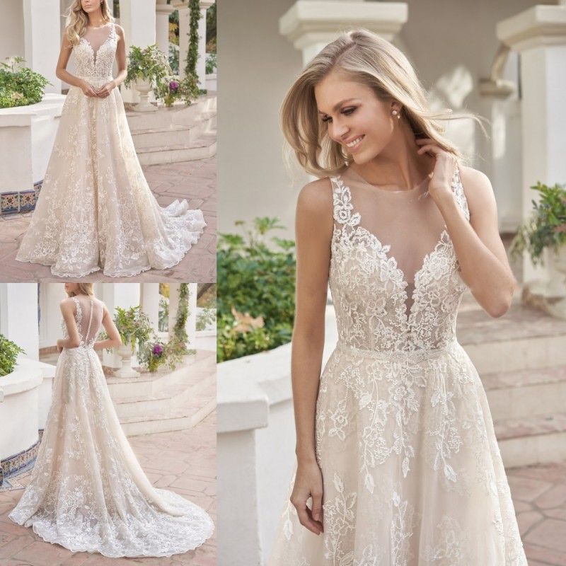 2019 New Custom Made Sexy Wedding Dresses Sheer Jewel Neck Beaded