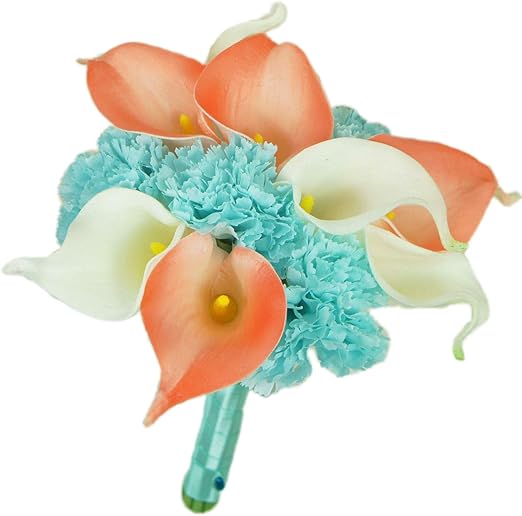 Wedding Coral Orange And Turquoise Teal Natural Touch Orchids