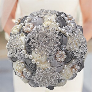 Shop 18cm Handmade Wedding Brooch Rhinestone Bridal Bouquet Satin