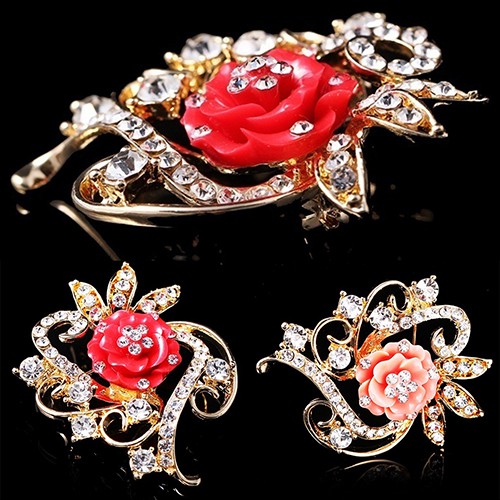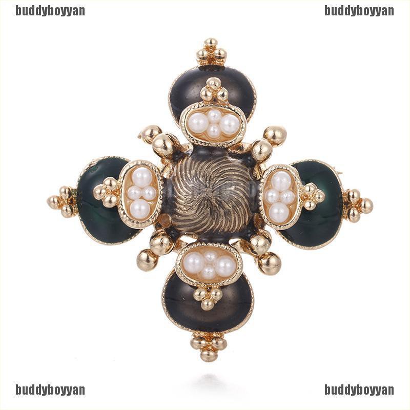 Fashion Crystal Flower Pearl Enamel Brooch Pin Women Wedding