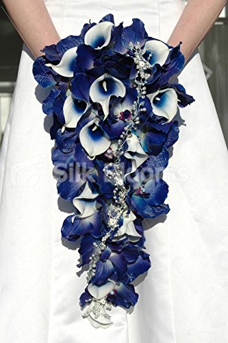 Long Midnight Blue Orchid Picasso Lily Cascading Bridal Bouquet