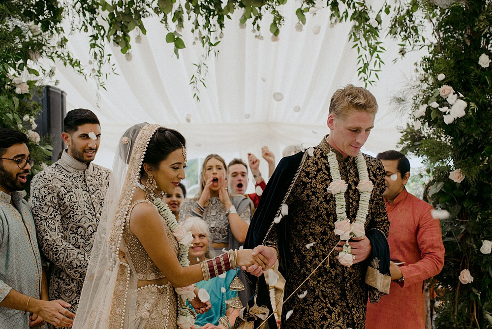 Asian Wedding In Traditional Country House Garden With Seasonal