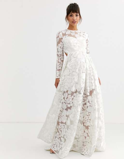 Asos Edition Wedding Dress With Open Back And Floral Embroidery