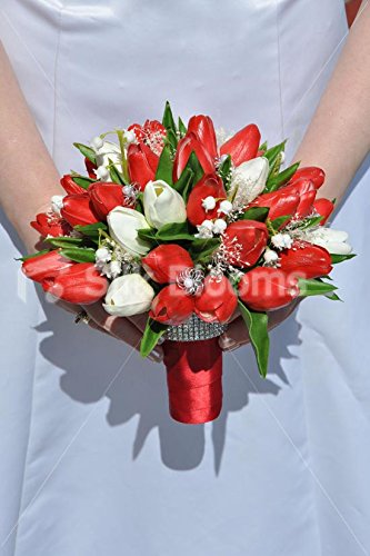 Red Ivory Freshl Touch Tulip Artificial Bridal Wedding Bouquet