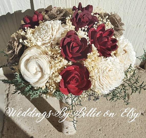Fall Sola Wine Burgundy Bouquet Wedding Flowers Burlap Lace Etsy